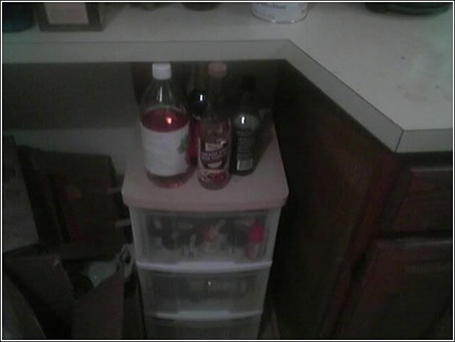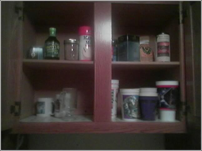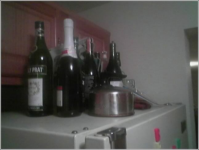 i got some spaghetti sauce, my brita, some sauerkraut, pickled turnips, hot peppers, a big pot of chili, last night's swedish meatballs and peas, some beerz, a dead kitten, OJ, eggs, and some other stuff you can't see like other dead kittens.