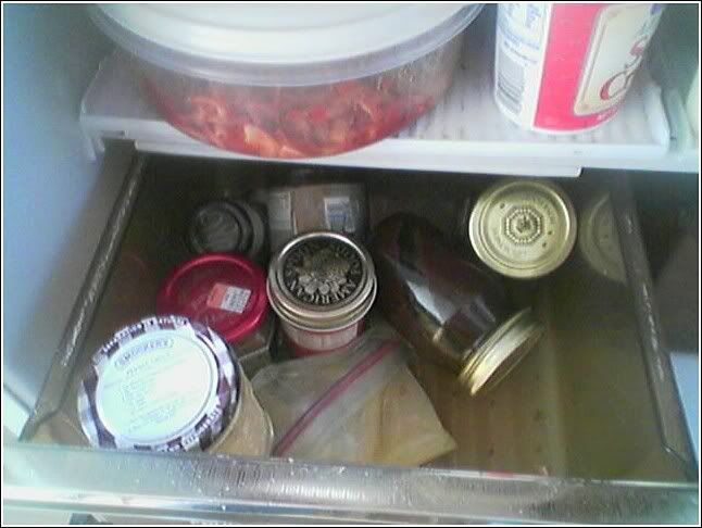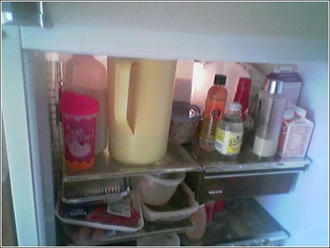 I get really itchy to rearrange soem of these fridges. If I had my way everything would be in boxes and labeled and shit. If I would let my stupendously anal self go, I'd probably even sort according to colour and stuff.