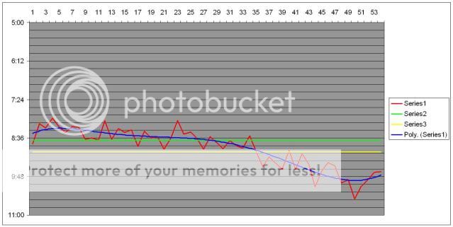 Also, harbls right about stopping if you feel like it - between each 30 min lap of the park, I often stop for a minute or two to drink water, or tighten laces, or just calm down a bit...I meant more that it's better to maintain a steady pace than to run fast for 6 minutes then stop, winded, for a few more, then gallop off again.