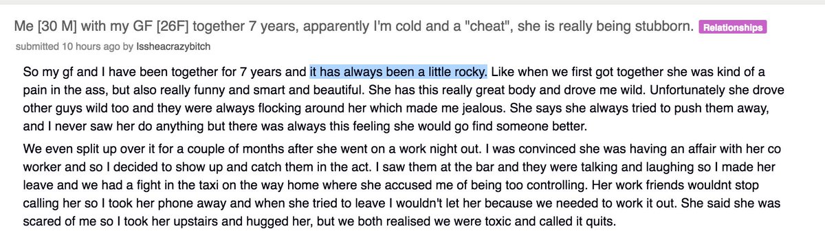 I’ve noticed a similar type of purity policing on this site before, not only in regard to infidelity. In the relationship subs there is always a clear hero/victim and villain. In my life and relationships, it has never been like that, even in cases where there was cheating. I mean in my view.