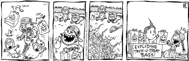 The Arlo and Janis vote was from me. Now that Richard Thompson's too debilitated to draw, it's my favorite daily. The fact that Arlo is the biggest horndog in newspaper comics, and has been for I guess a couple of decades now, is part of its appeal for me. But the strip also has loads of pathos, with Arlo's unfulfilled dreams of ditching the cube-farm rat race and living an idyllic life on a sailboat or a farm, both of which their son Gene has achieved. (Though Gene has his doubts that it's much of an achievement.) And Ludwig is a great cartoon cat.