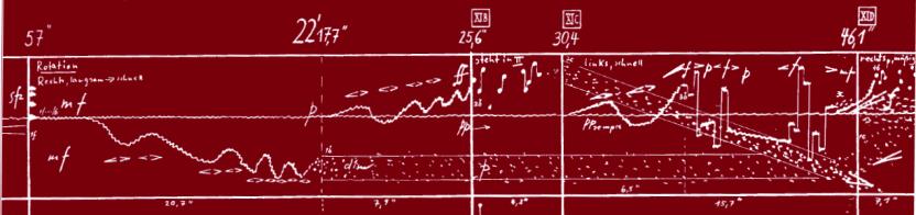 Les espaces acoustiques [occupied] him for 11 years (1974–85) and lasts over an hour and a half in performance: the forces of the component pieces range from the solo viola of the opening Prologue (1976) to the large orchestra of Transitoires (1980) and the concluding Epilogue (1985), and each save the last can be played separately or along with any adjacent work in the cycle (the ending of the first piece, for instance, forms the beginning of the second). The entire cycle is based on a pattern of inhalation–exhalation–rest. The moments of rest are marked by regular, periodic patterns and a part of a harmonic spectrum on E (41.2 Hz); the inhalations develop these repetitive figures, pushing them into a state of maximum disorder and instability; the exhalations proceed from the resulting disorder back to a new state of rest on E. Especially characteristic is the blurring of the distinction between harmony and timbre to which Grisey gave the name ‘instrumental synthesis’. The low E in the trombone at the opening of Partiels (1975) is followed by a chord which imitates the timbre of the trombone, modelled after a sonogram analysis of its sound. Long stretches of the same work employ harmonic transformations that simulate with purely instrumental forces the electro-acoustic technique of ring-modulation.