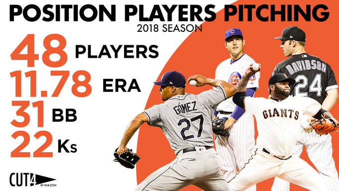 Jeff Sullivan @based_ball 15m15 minutes agosince the start of last year position players pitching have a 4.93 ERA in about 46 innings. better than Matt Cain, Joe Kelly, and Ubaldo10 retweets 15 likes