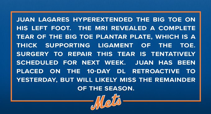 Wilmer Flores has been diagnosed with early onset arthritis in both knees. He is done for the season.— Anthony DiComo (@AnthonyDiComo) September 20, 2018
