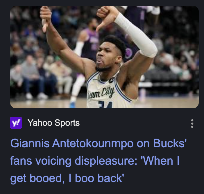 another pathetic showing from the Bucks, who were hanging with the Spurs for the first quarter and a half and got completely run off the court after. the entire 4th was garbage time. what's it gonna take to get Doc fired and to ship Giannis outta here?