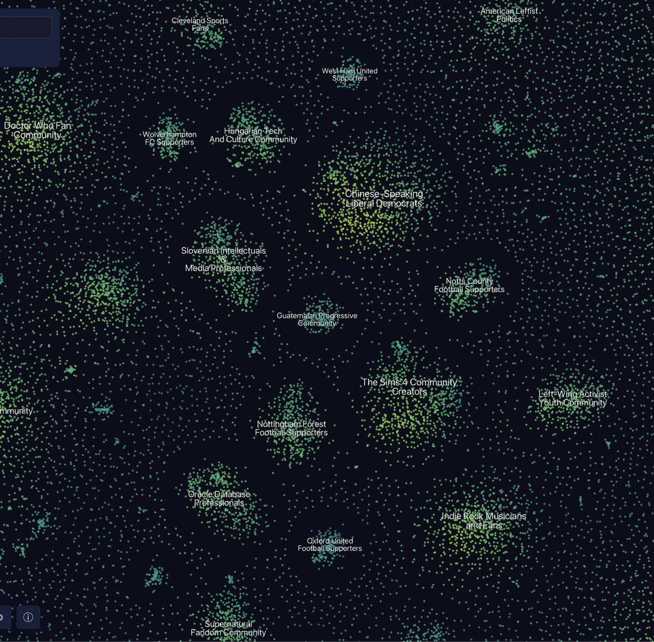 The only information used to label the "clusters" is 30 profile bios randomly chosen from that cluster, which an LLM is asked to identify the commonalities in. So the name given to a cluster is not something that applies to everyone in it.