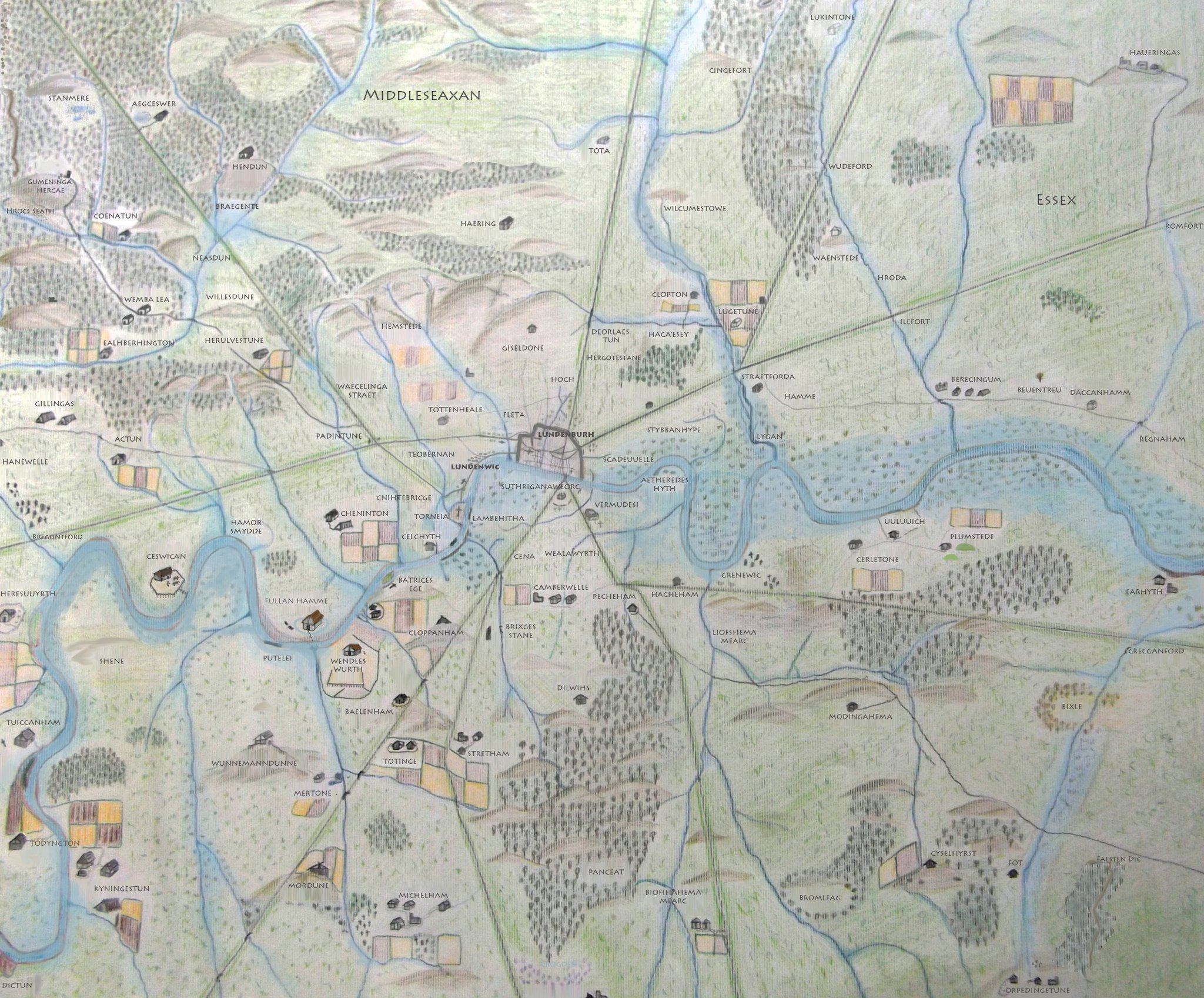 plenty of modern favourites already present: suthriganaweorc!