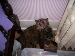 i can't foolya i know it's the most-classic yawn trick. that's my kitty simulateneously getting toasty and chilling by the radiator (i can cornball w/ impunity when i'm posting kitty pictures rite?).