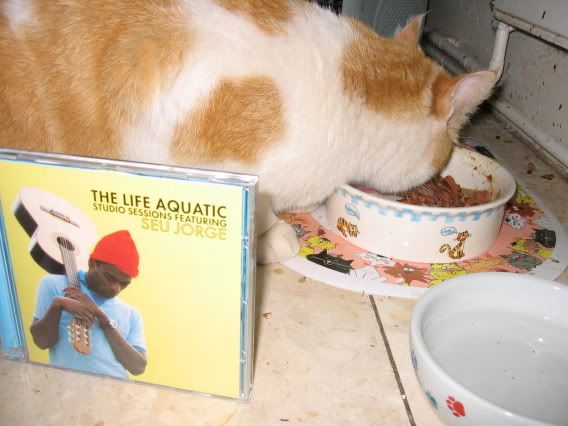 Here we have a black and white American shorthair and Seu Jorge's Carolina.
