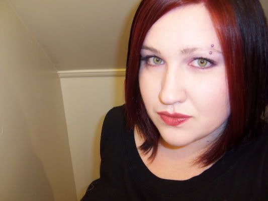 that is not actually high school, it is post-college hah! i went through a plum phase and then one day decided to bleach the front and make it red. i don't know why i look so angry in that pic :(