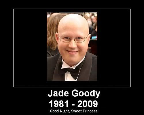 RIP Jade, since no-one else has bothered to say it. Not that the world's a worse place right now for having one less ignorant bully in it or anything.