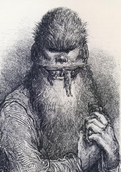 The door flew open, in he ran, The great, long, red-legged scissorman. Oh! children, see! the tailor's come And caught our little Suck-a-Thumb.