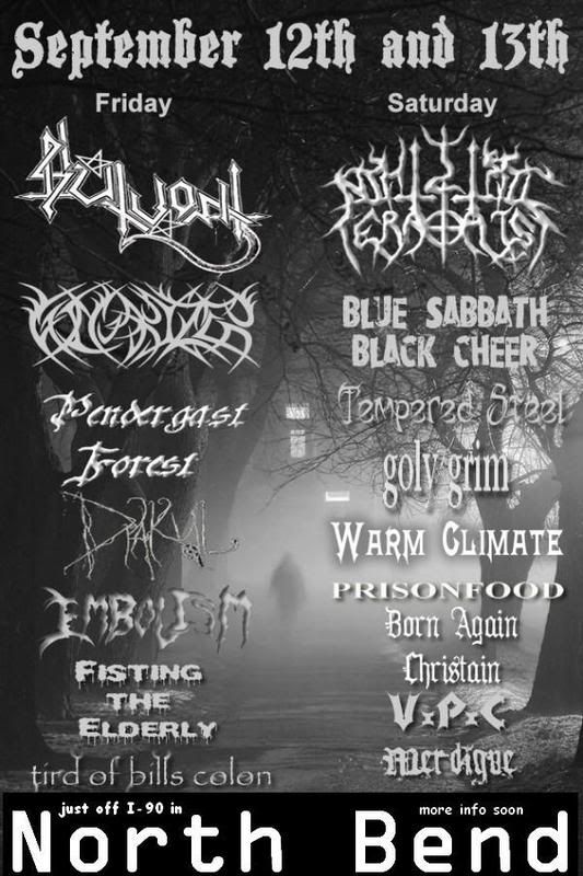 Just off of I-90, about an hour or so east of Seattle, pass by North Bend, exit onto SE Homestead Valley rd, turn left onto NF-9020, an then you go through a gate up a hill and drive till you see freaks. This is a camping event, bring your own tents, sleeping bags, food, water, beer, whatever. and if you want to make a donation for the gas that's going to run the generators all weekend...please do that as well! Hope to see you there...