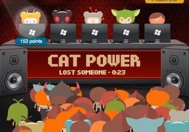 You join via Facebook; for controlling growth, you must have a friend on Facebook that is already a user of the service at the moment. After logging in, you browse the different music rooms or create your own. If there’s an open DJ spot (five maximum to a room), you click “Play music” and your avatar transports to the stage. Queue up some songs—they have an extensive library or you can upload your own. Songs played in the room rotate evenly between the DJs. Listeners in the room can then “awesome” a song (and their head starts to bob, and the DJ gets a point) or they can “lame” a song. As users earn more points, they unlock different avatars. Listeners can also add the song to iTunes, Spotify, Last.fm, or their Turntable queue.