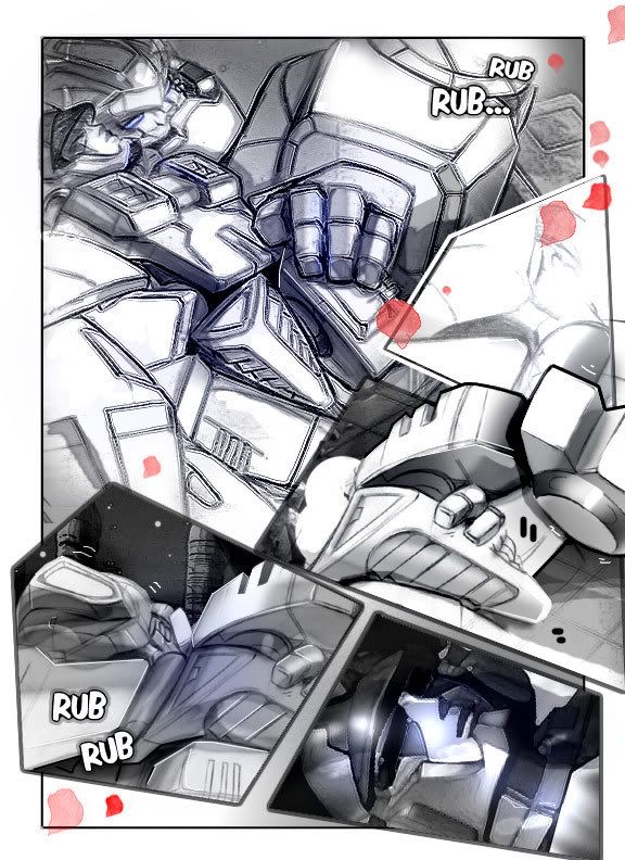 Magnus dashed into the shower area desperately. He had been stalking one special mech for weeks, and now it was time for him to make his move. Silently he removed his codpiece and slipped into the occupied stall.