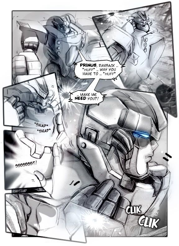 The small robot turned to gawk at Ultra Magnus' long staff. "Wheelie say, Ultra Magnus is horny today!" he chirped.