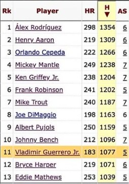 More evidence I do not fully appreciate Vlad (turned 27 yesterday). "Vladimir Guerrero Jr. is 1 of 13 players in MLB history with 1000+ hits, 180+ HR, and 5+ All-Star games before turning 27"--didn't check, but will assume it's accurate.