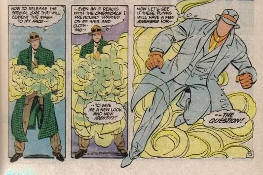 What I've found really interesting lately, especially as I've been quarter-binning my way through the late 80s DCU, is how the Charlton Action Heroes reacted to being Watchmenizizinated.Here's the Question in his first proper DCU appearance from Blue Beetle #5:http://i7.photobucket.com/albums/y298/hukl/question1.jpg