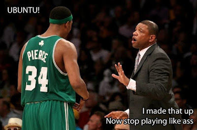 try doing it 3 straight years asshole! <bitter break> i'm sorry i'm not even gonna stoop to address the pile of punkass comments from pierce and ray and baby et al but doc lost a point right when he was the one celtic i was about to salute. you say that shit in the locker room maybe when your team is all crying and shit but not the first words out of your mouth to the media, especially when we know they're all gonna make excuses for you anyway ;)