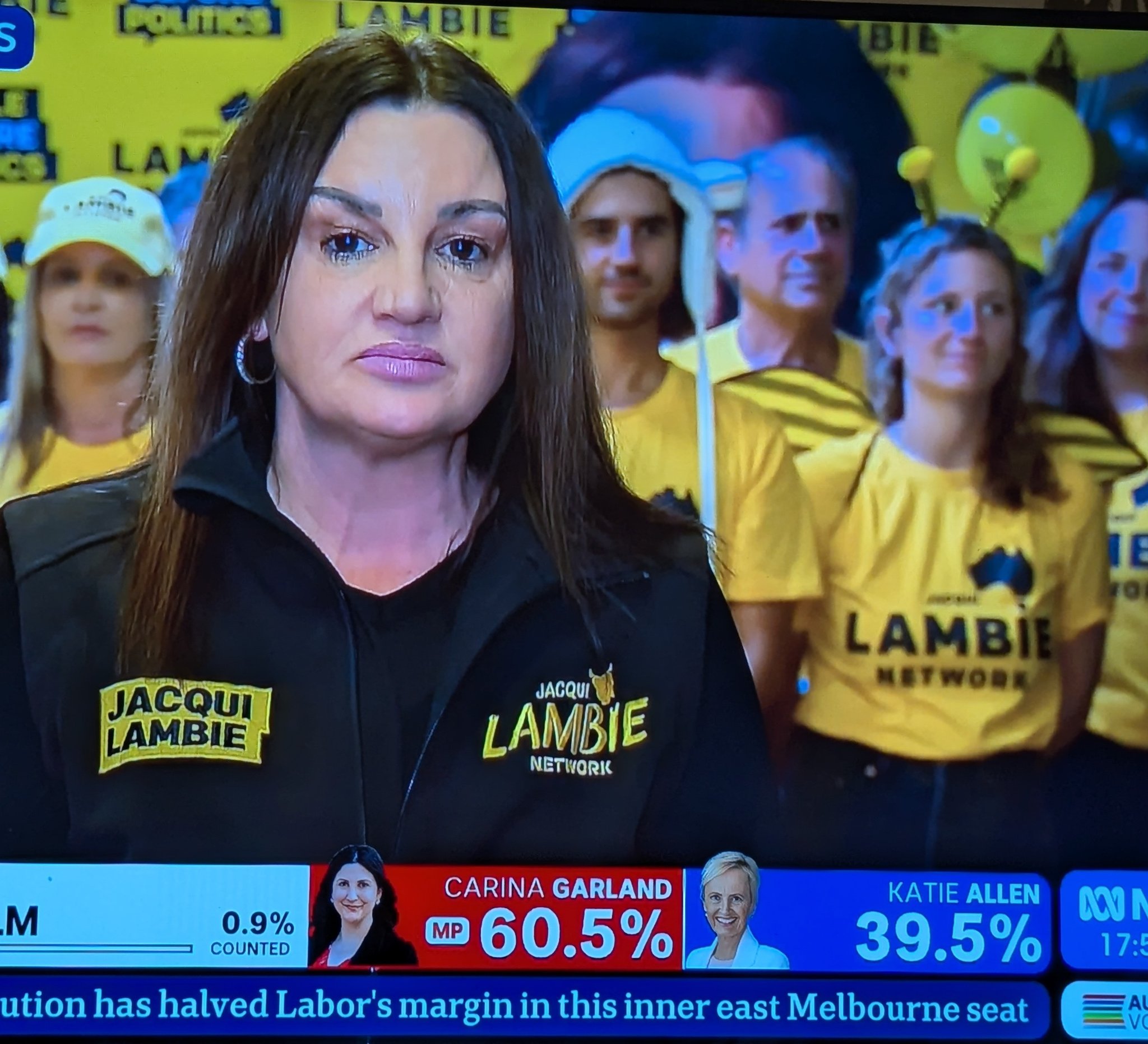 Did anyone else see the people dressed as a lamb and a bee behind Jacqui?